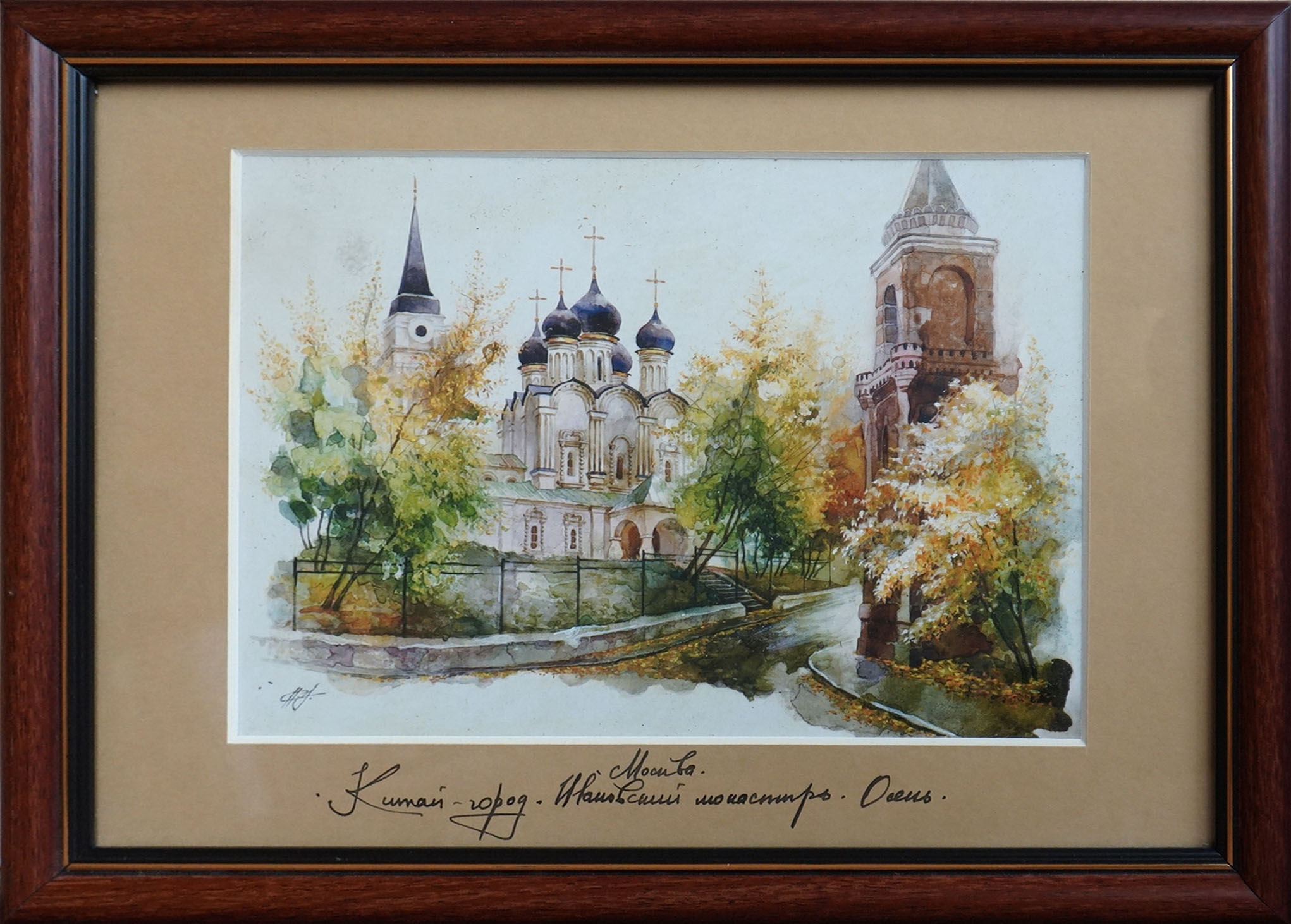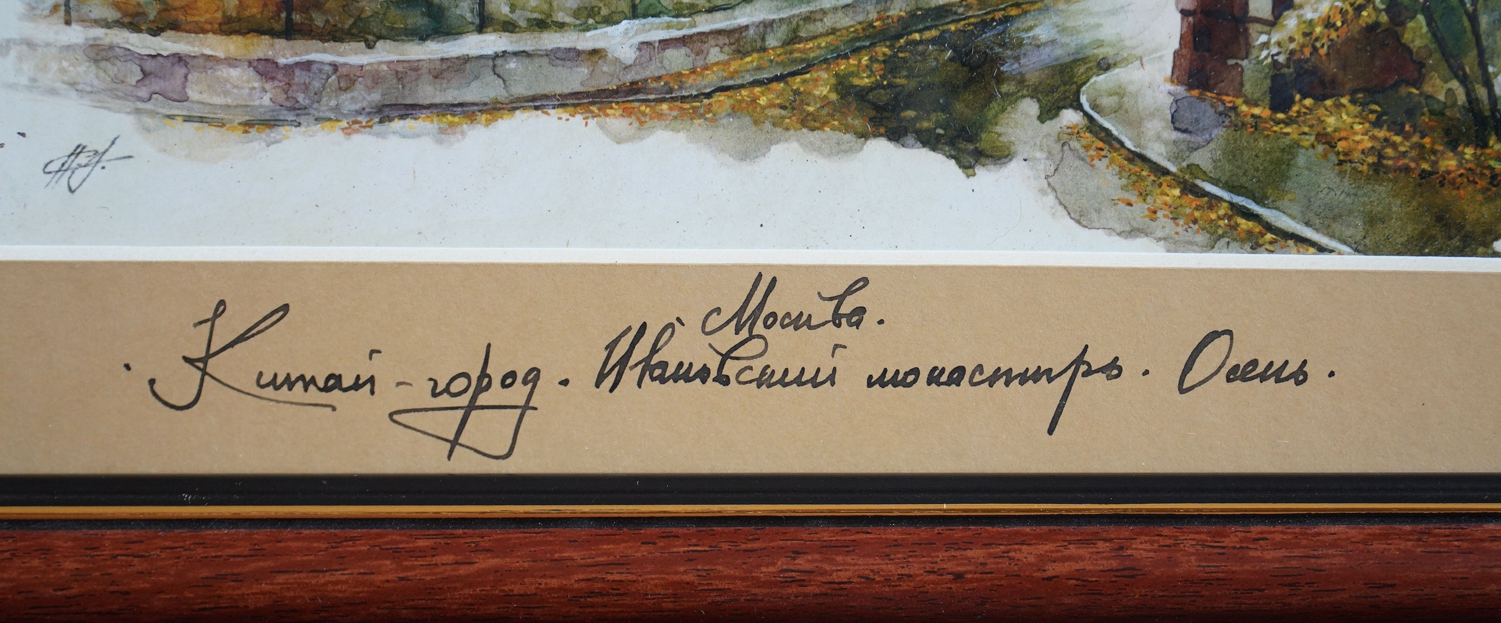 Это серия акварельных картин под общим названием "Московские дворики". Картина выполнена в технике акварель, с применением темперы, имеет артикул 0406. Оформлена в классическом стиле, в коричневой рамке, под стеклом, с бежевым паспорту. Этот сюжет нарисован как миниатюра, имеет маленький размер размер, по внешнему периметру рамы 31*23 см, но в дополнение к этому формату, существуют другие серии: панорамы 0100 - 57*25, квадратные 0200 - 31*43, вертикальные 1100 - 31*17, большие 0300 - 60*37, цветы 1000 - 17*42. В каждой серии по нескольку сюжетов от 6 до 25. Они разные по цвету графике, но объединены одной манерой исполнения, и одним стилем оформления, поэтому все картины дополняют одна другу.