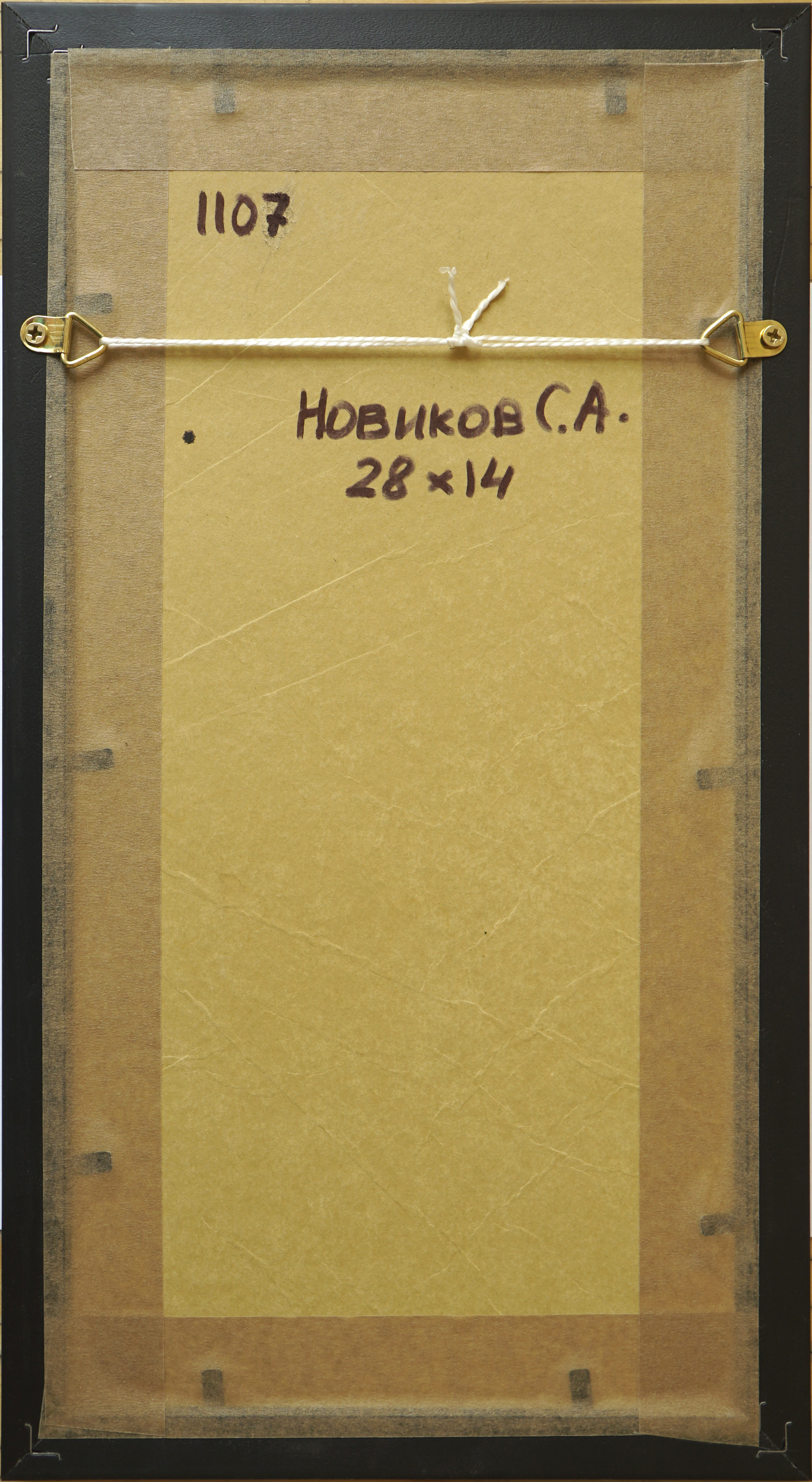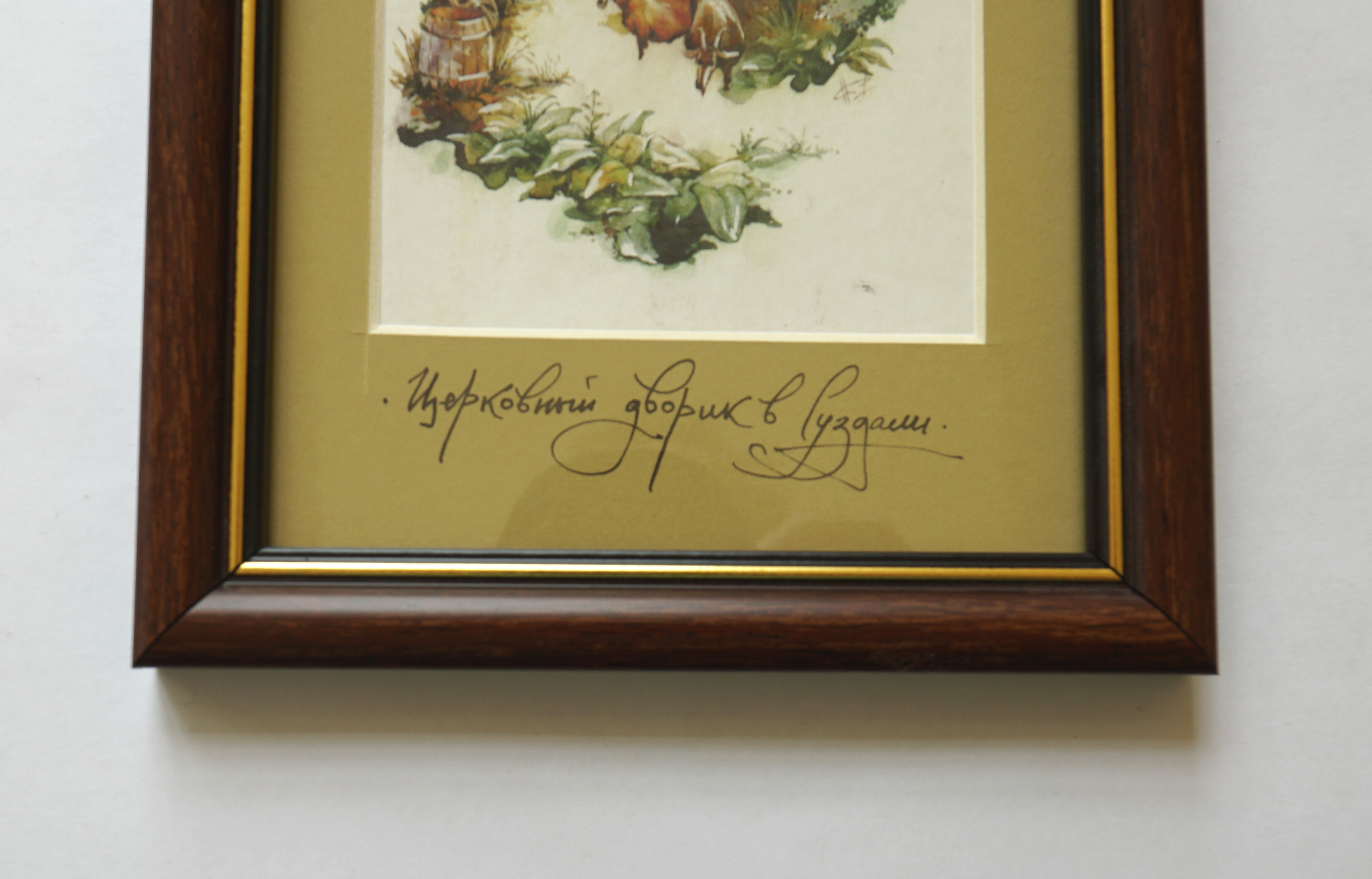 Это серия акварельных картин под общим названием "Московские дворики". Картина выполнена в технике акварель, с применением темперы, имеет артикул 1107. Оформлена в классическом стиле, в коричневой рамке, под стеклом, с бежевым паспорту. Этот сюжет нарисован как миниатюра, имеет маленький размер, по внешнему периметру рамы 31*17 см, но в дополнение к этому формату, существуют другие серии: панорамы 0100 - 57*25, квадратные 0200 - 31*43, вертикальные 1100 - 31*17, большие 0300 - 60*37, цветы 1000 - 17*42. В каждой серии по нескольку сюжетов от 6 до 25. Они разные по цвету графике, но объединены одной манерой исполнения, и одним стилем оформления, поэтому все картины дополняют одна другу.